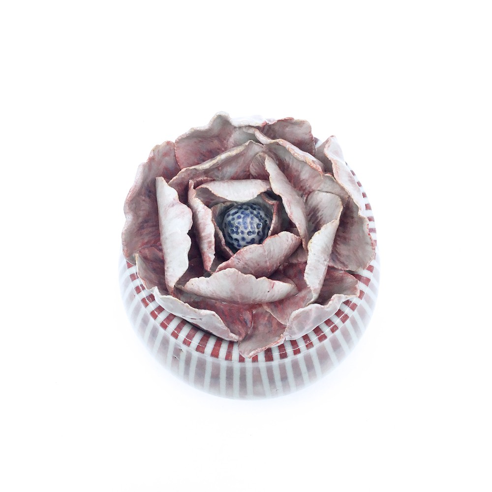 ceramic flower jar with removal lid. artist: Catherine Aufdenkamp