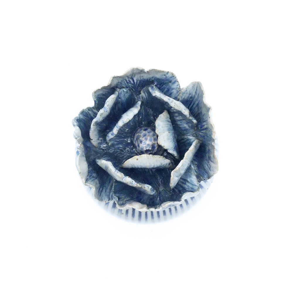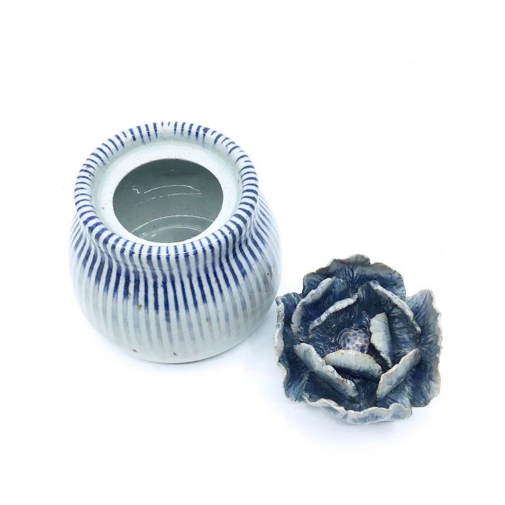 ceramic flower jar with removal lid. artist: Catherine aufdenkamp