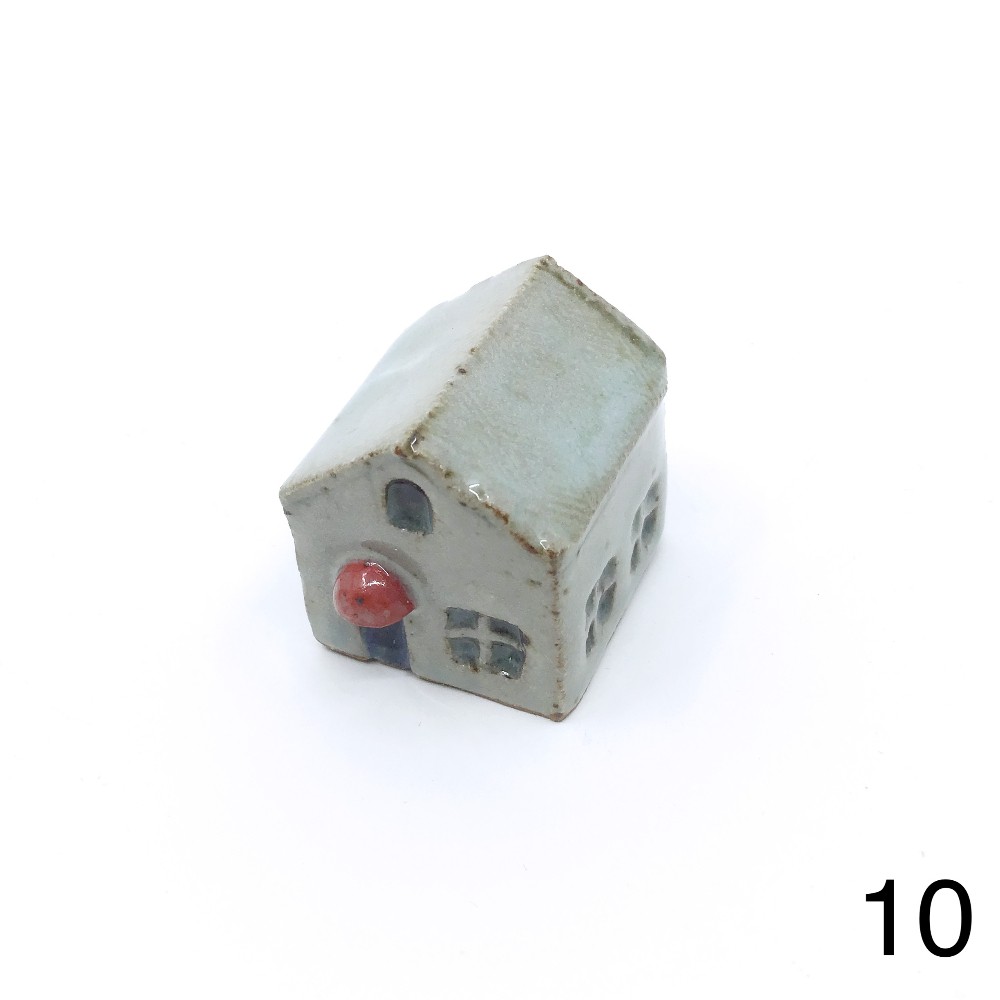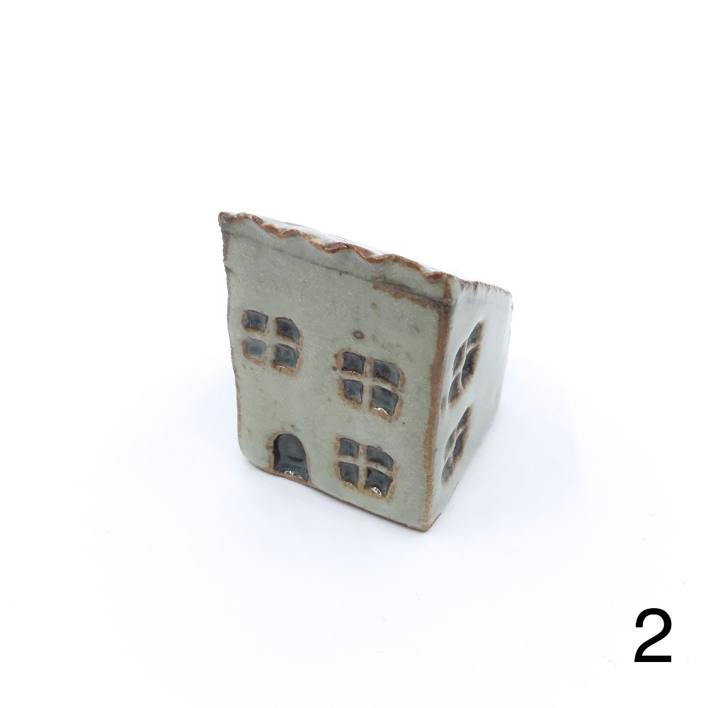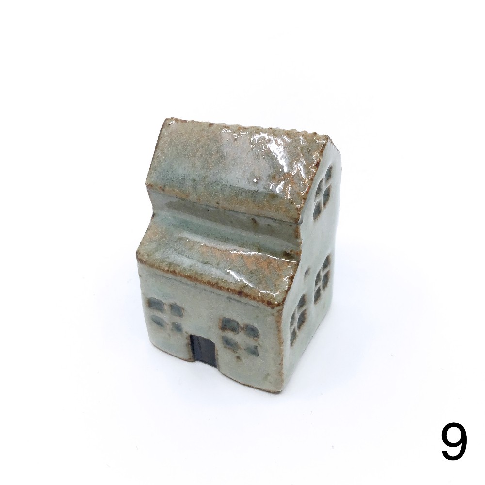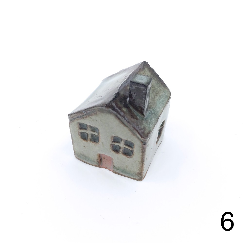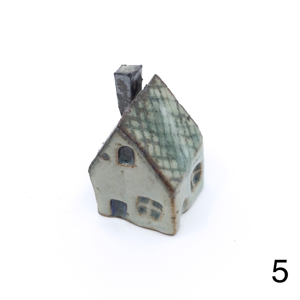 Small clay houses in a variety of styles by Catherine Aufdenkamp