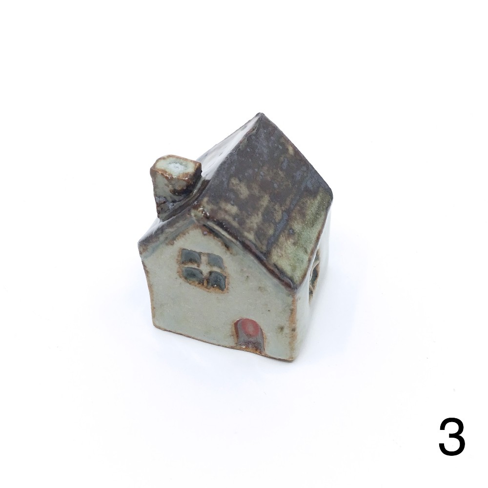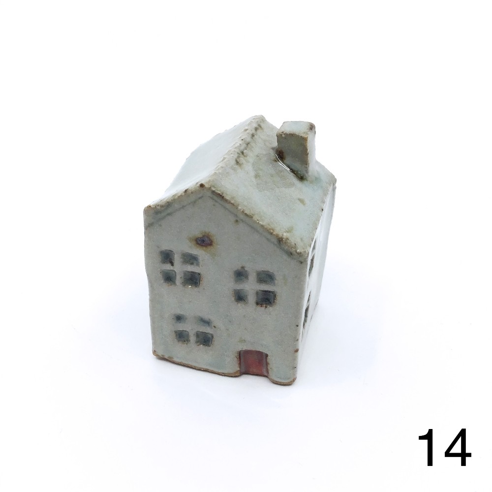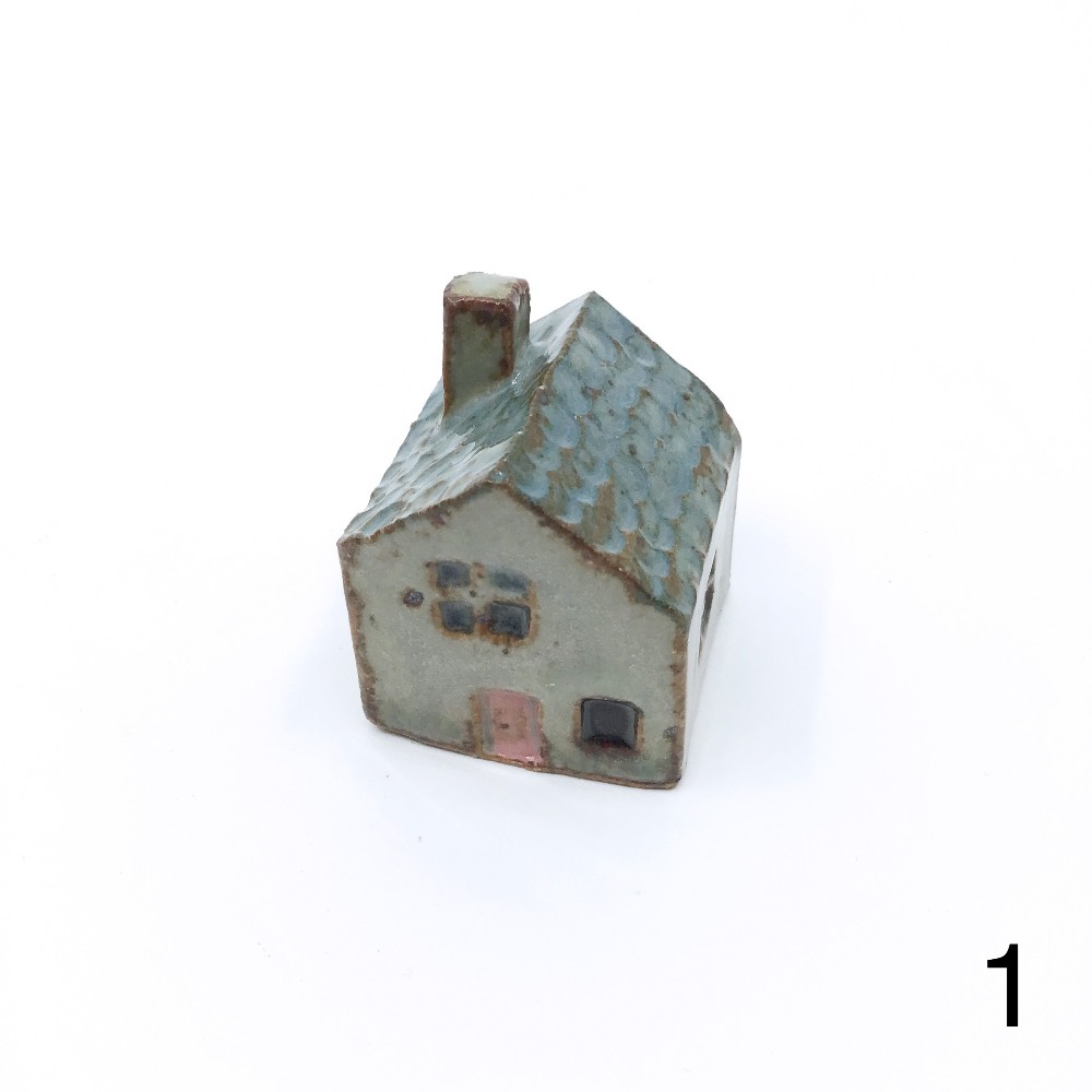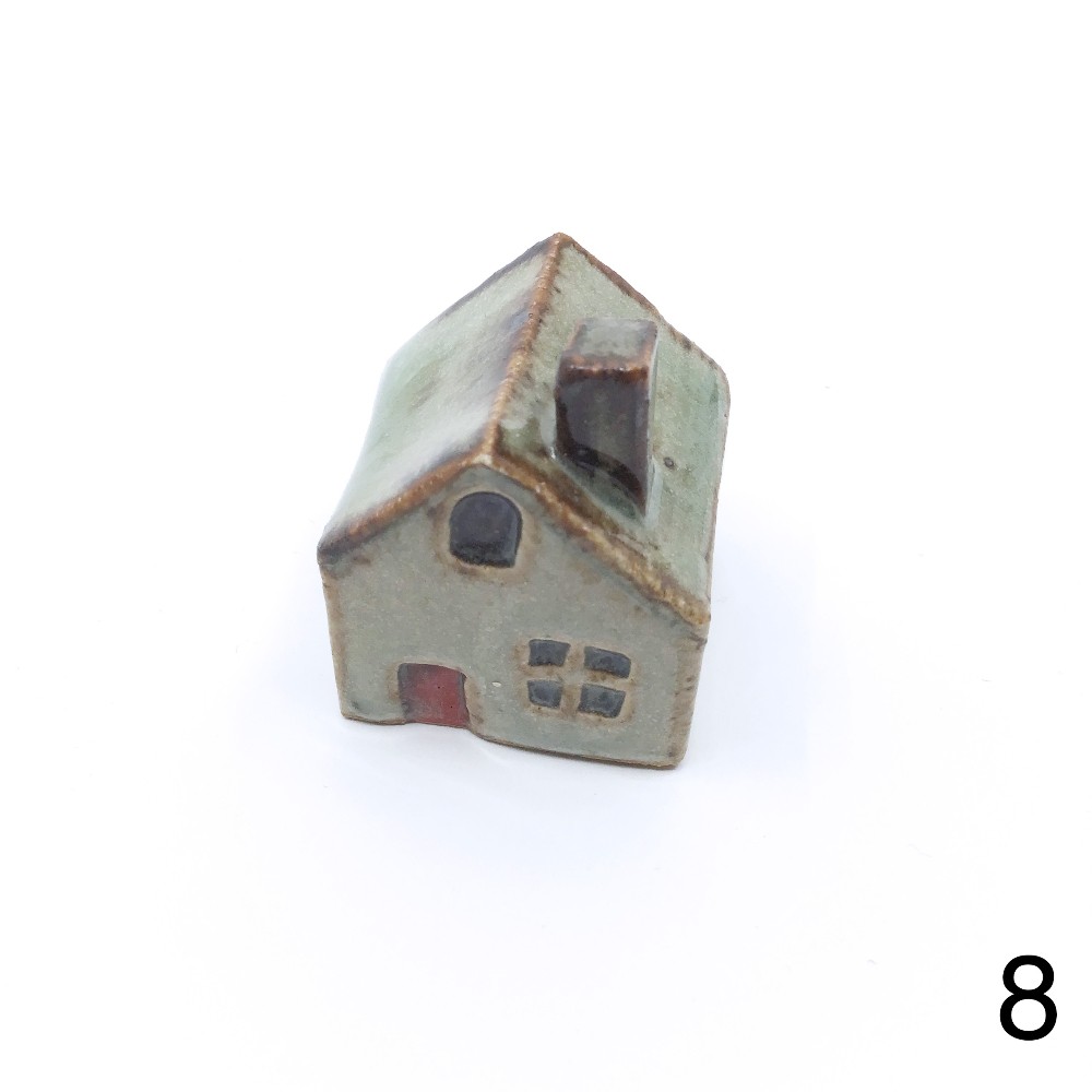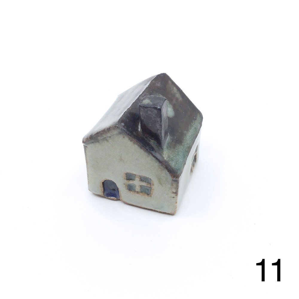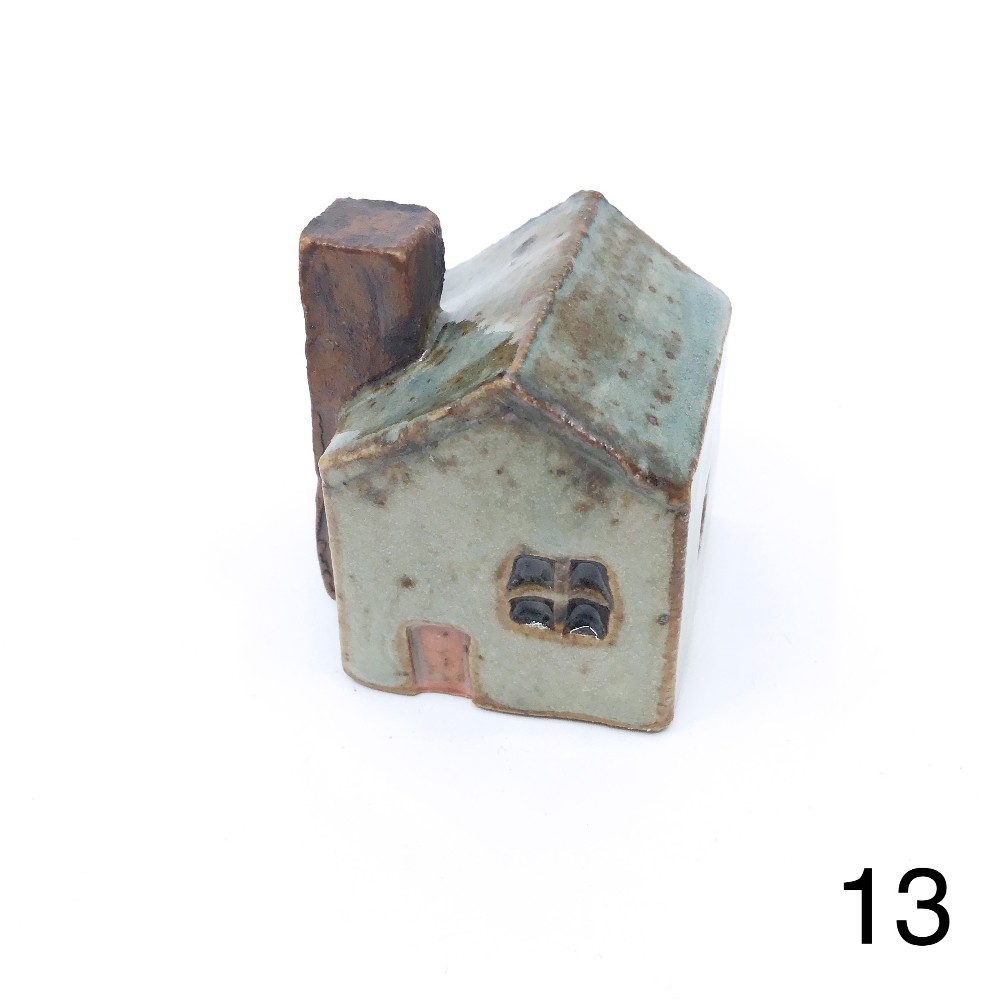 Small clay houses in a variety of styles by Catherine Aufdenkamp