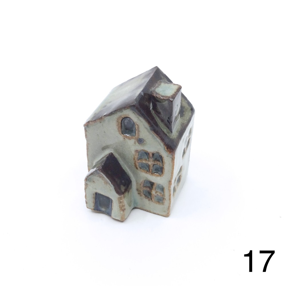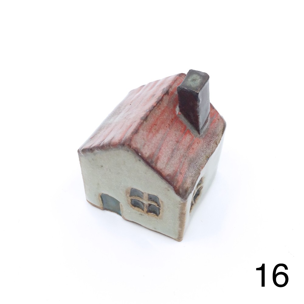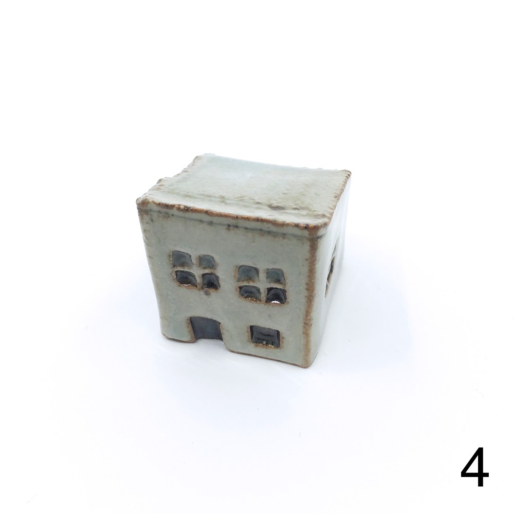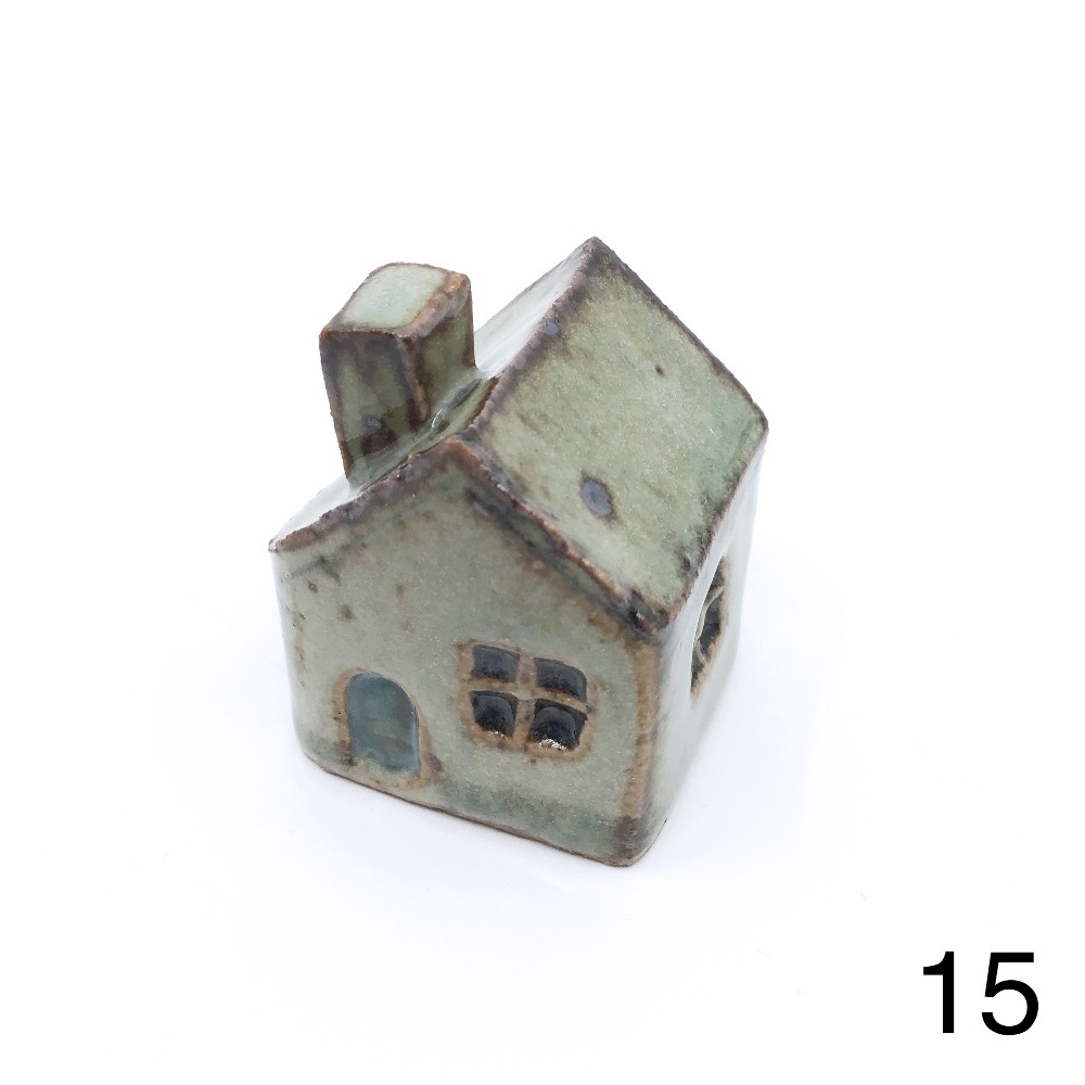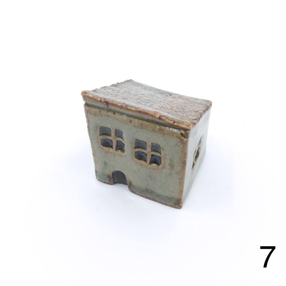 Small clay houses in a variety of styles by Catherine Aufdenkamp