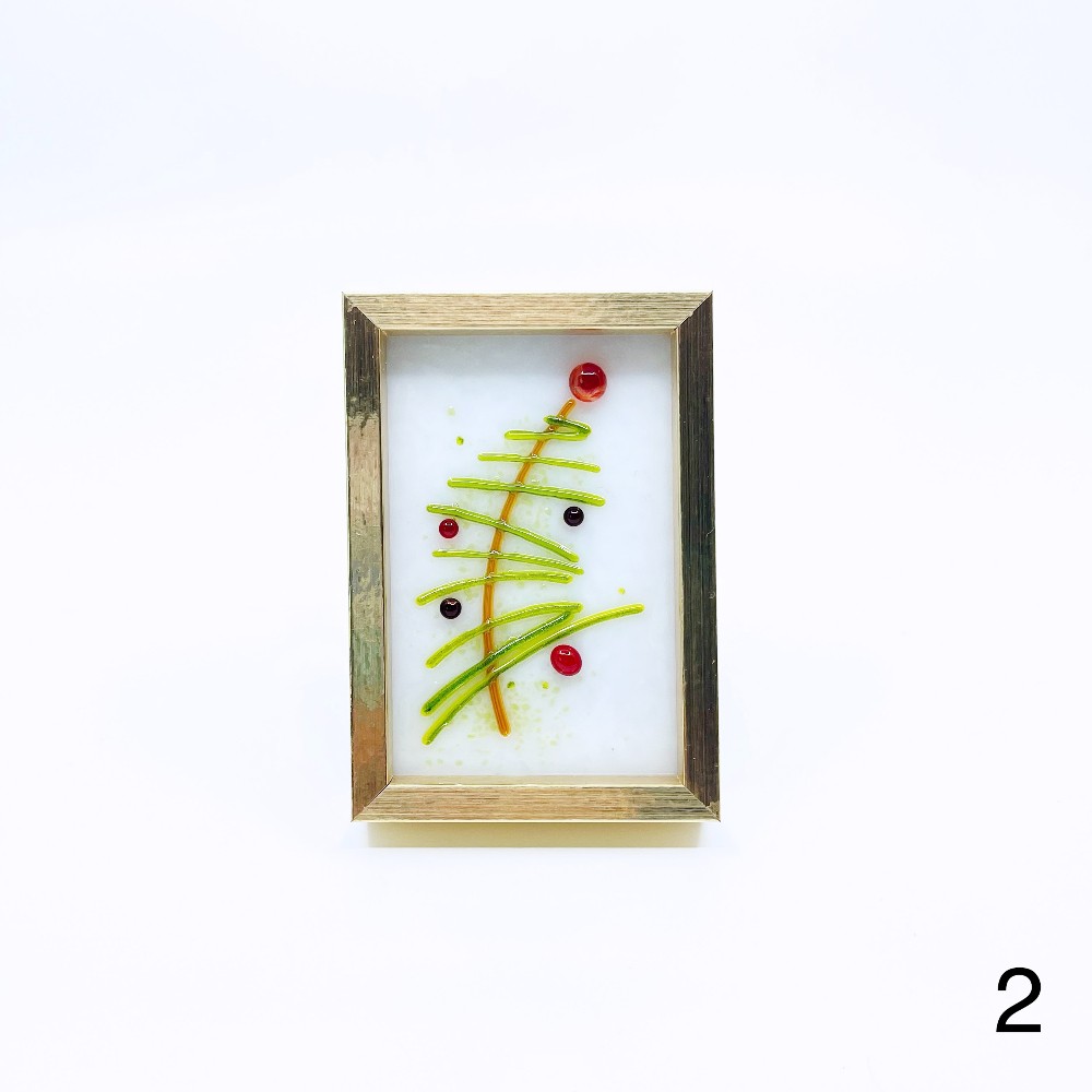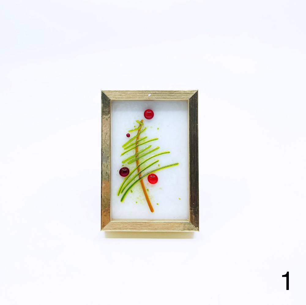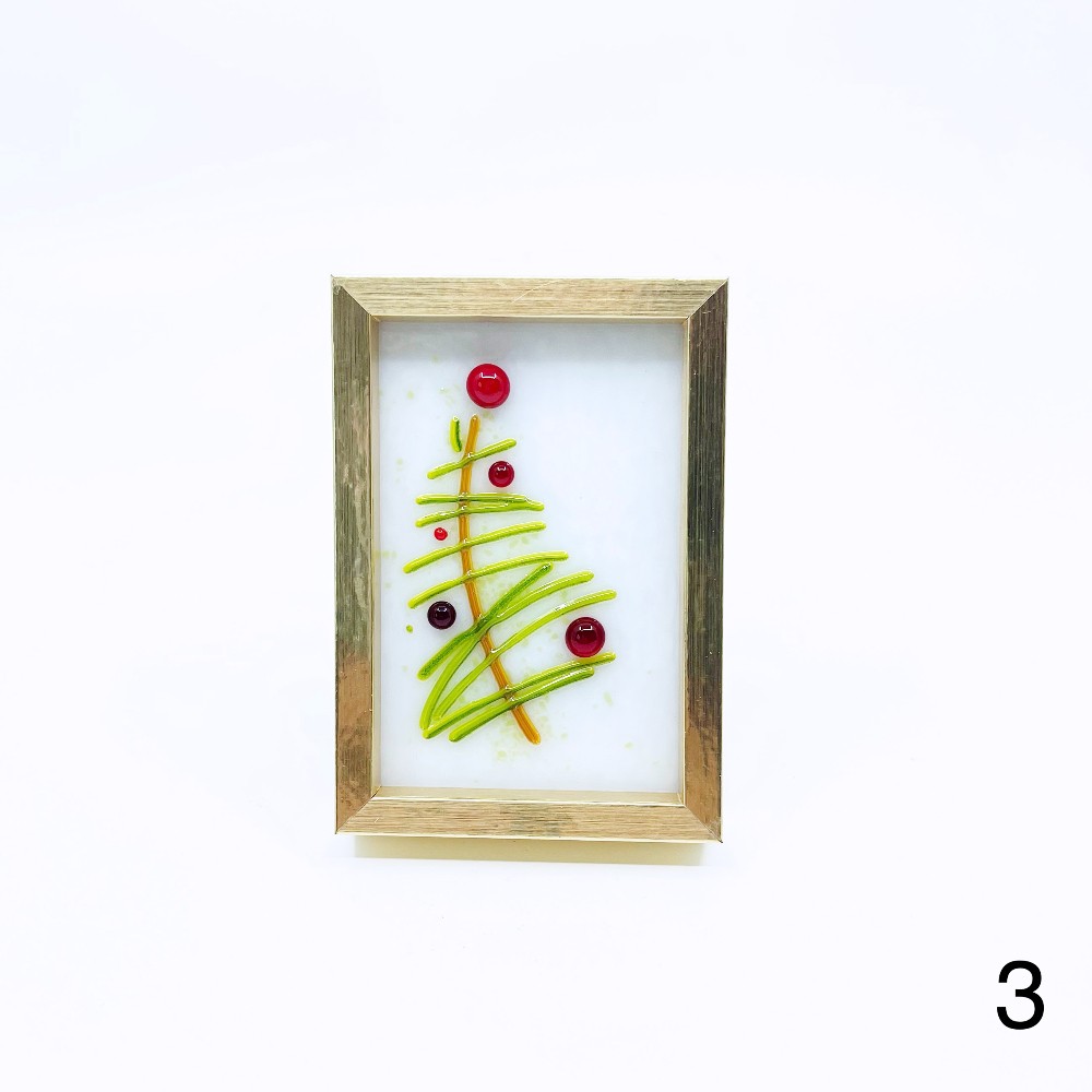 Framed fused glass Christmas tree with red ornaments by Valerie Norton