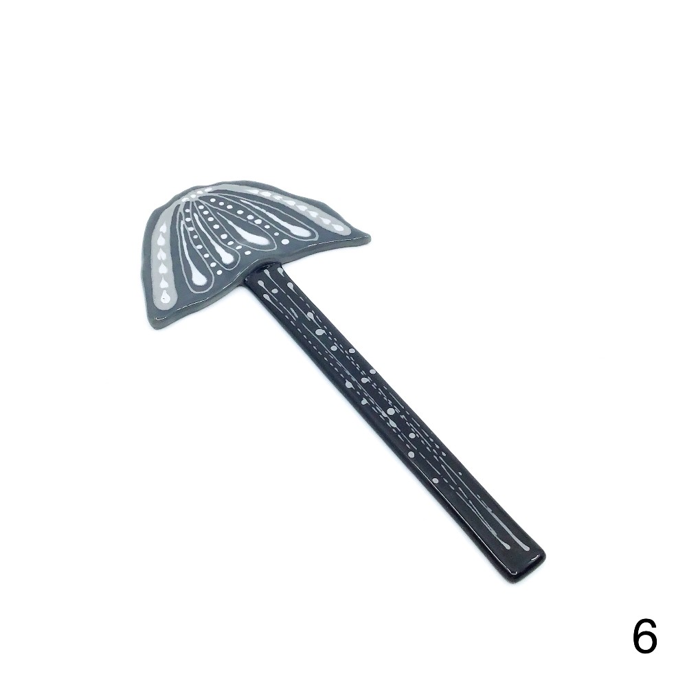 Fused glass mushrooms, handpainted with glass paint by Valerie Norton. Use indoors or outdoors.