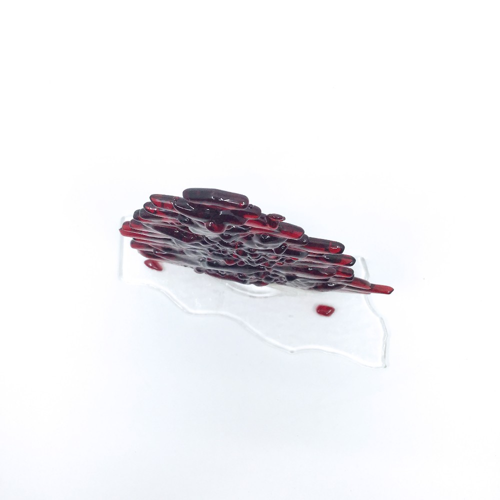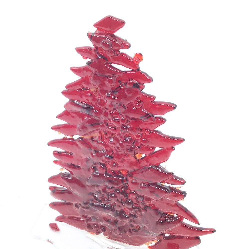 Festive glass tree in red on a clear stand by Jenny Dillon