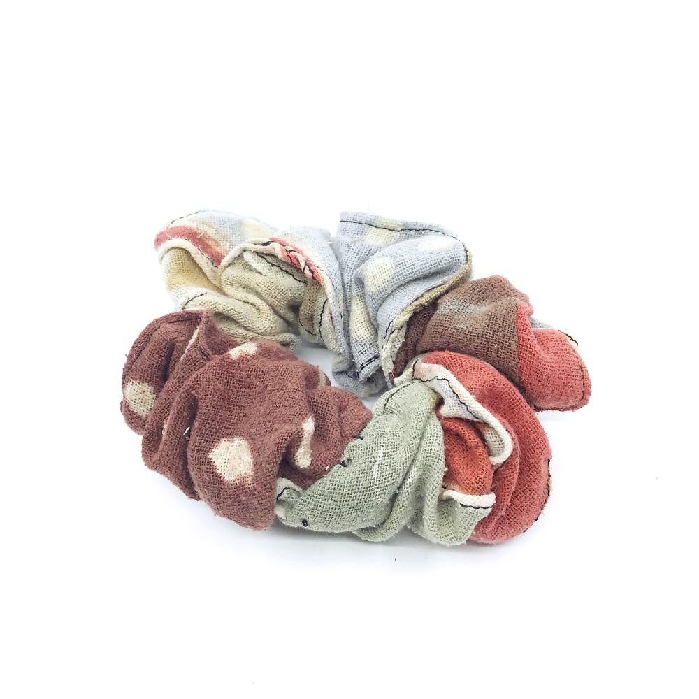 Raw silk scrunchies in earthy tones by Traci ColeCare instructions: Hand wash & hang to dry