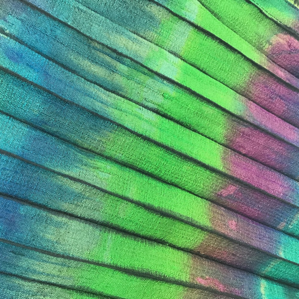 Shibori pleated hand dyed silk scarf in jewel tones by Karen Rose