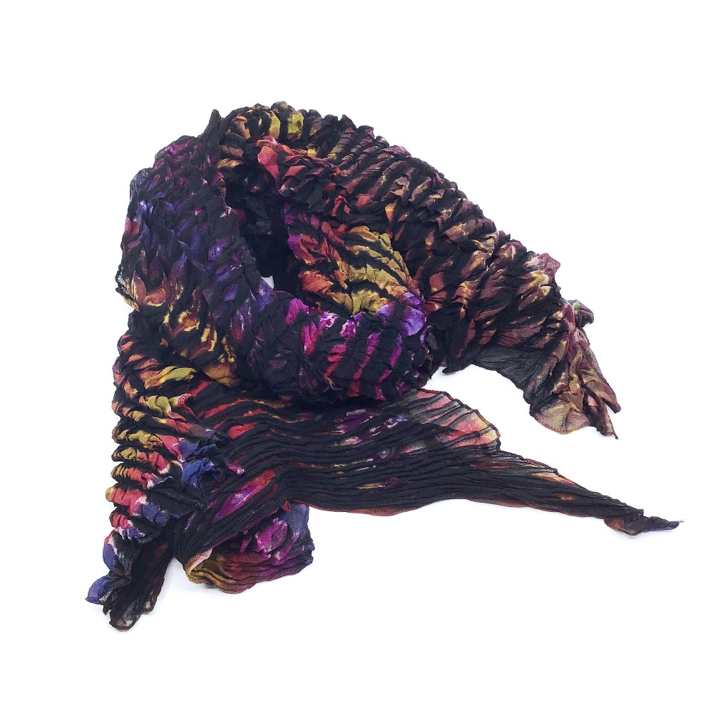 Shibori scarf made from chiffon in shades of black & gold by Karen Rose