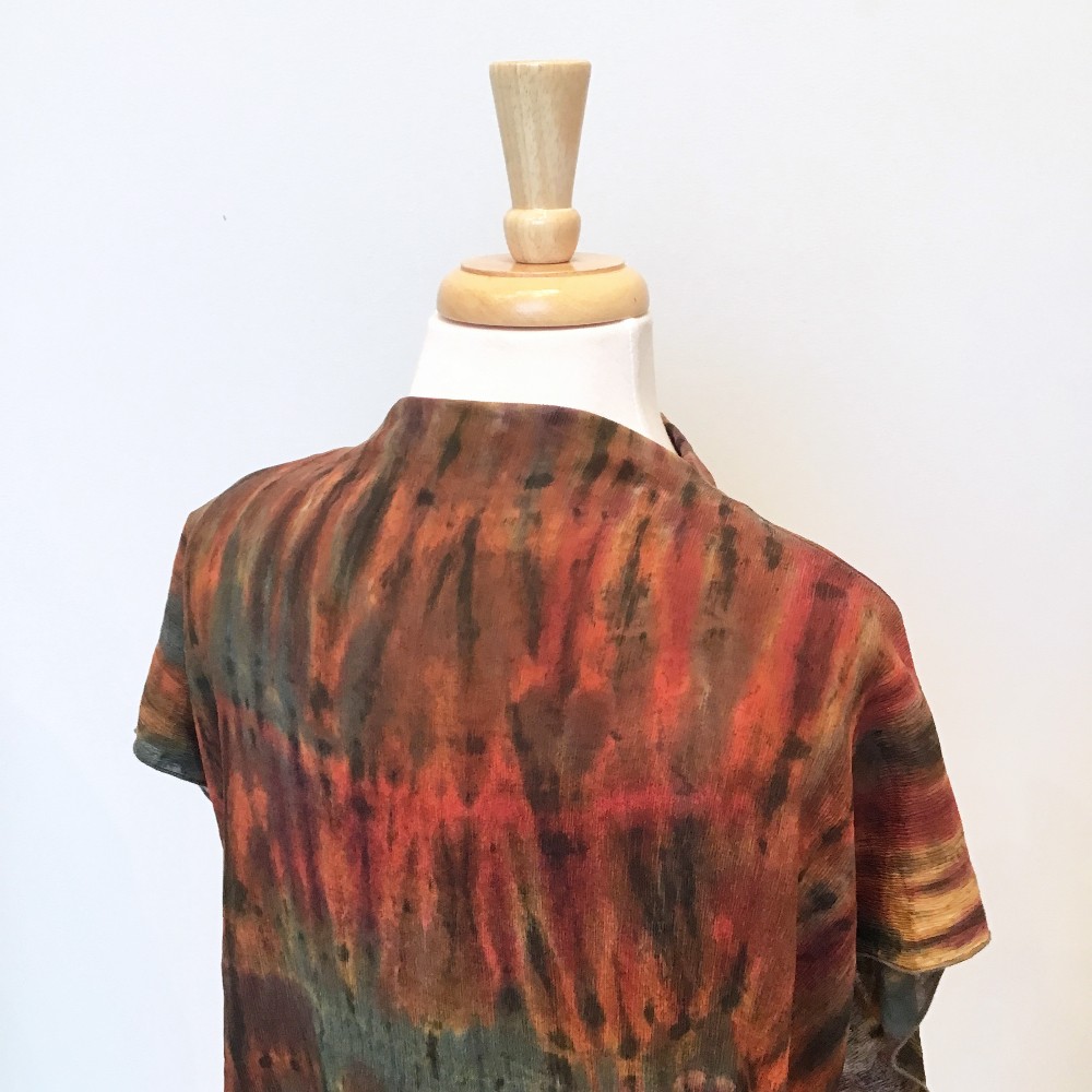Shibori painted silk vest/top in rustic colors by Karen Rose. Wash on delicate setting.