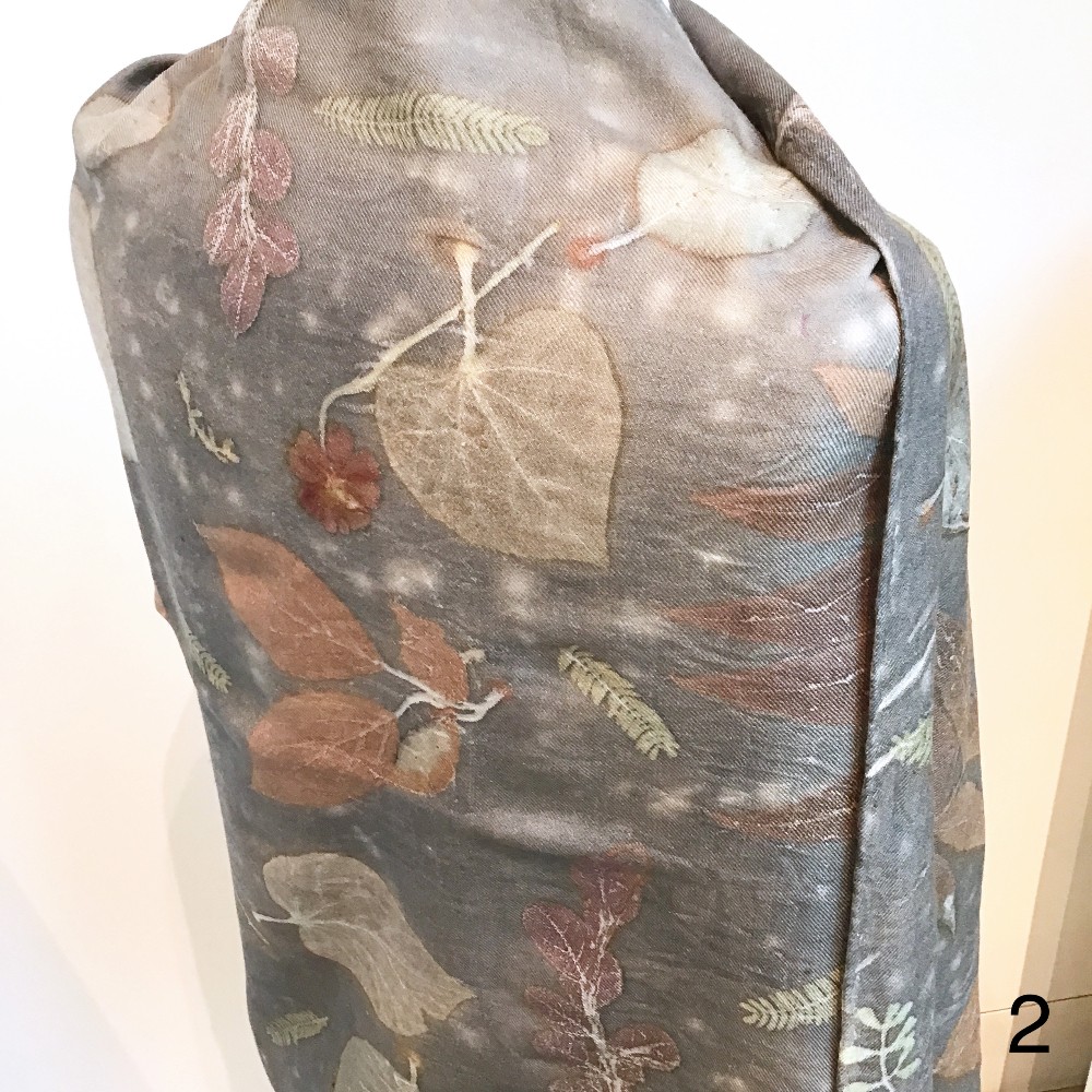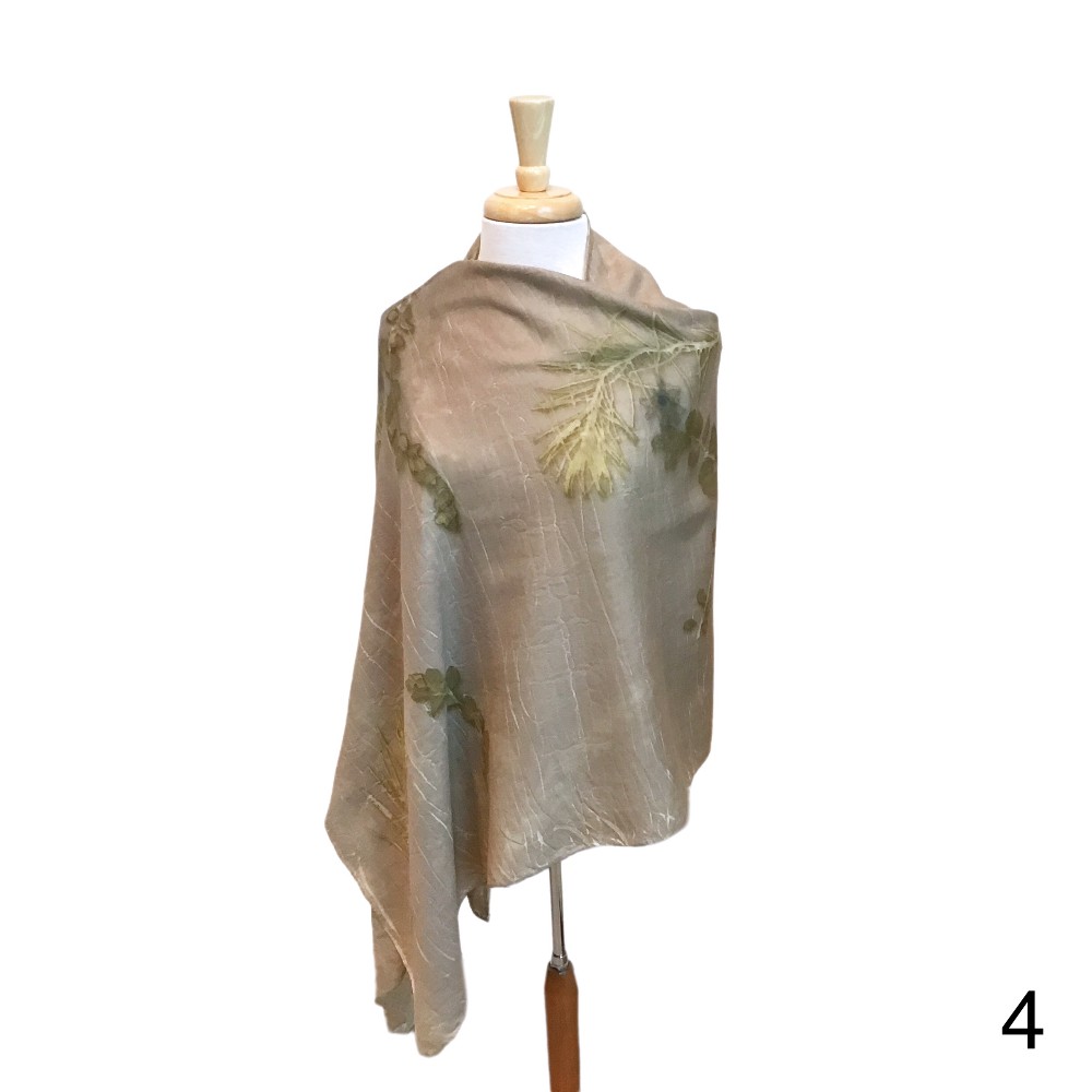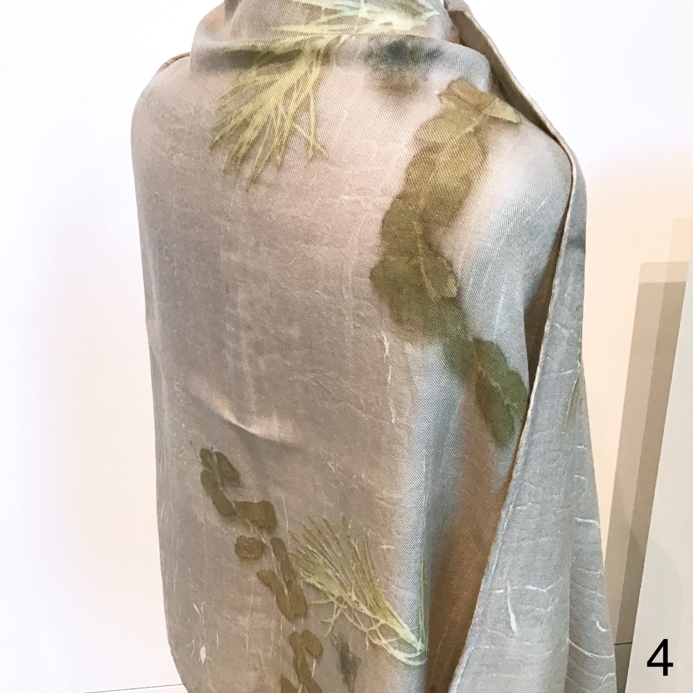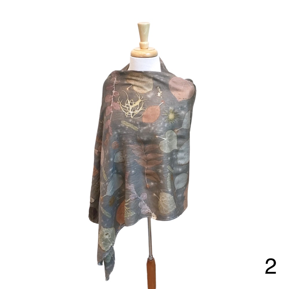 Eco-dyed shawls made from wool & silk with a variety of styles by Lynda Jacobs
