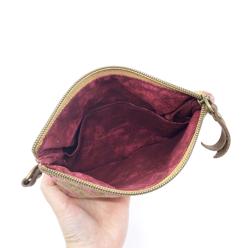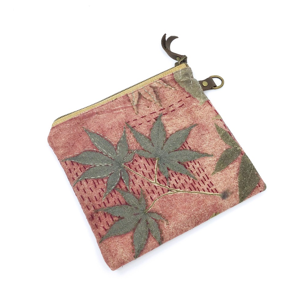 Eco-printed, cotton zipper bag in red & green by Lynda Jacobs and constructed by Susan Westmoreland