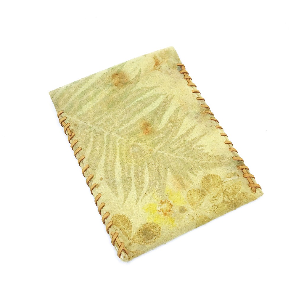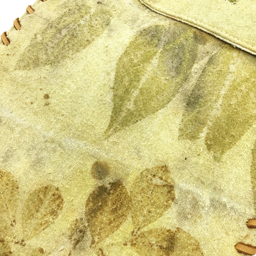 Eco-printed silk bag in shades of green by Lynda Jacobs and constructed by Susan Westmoreland