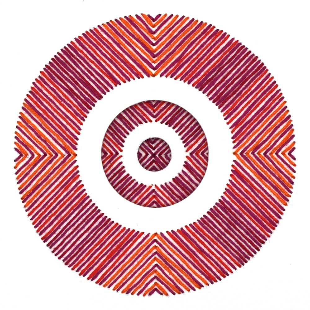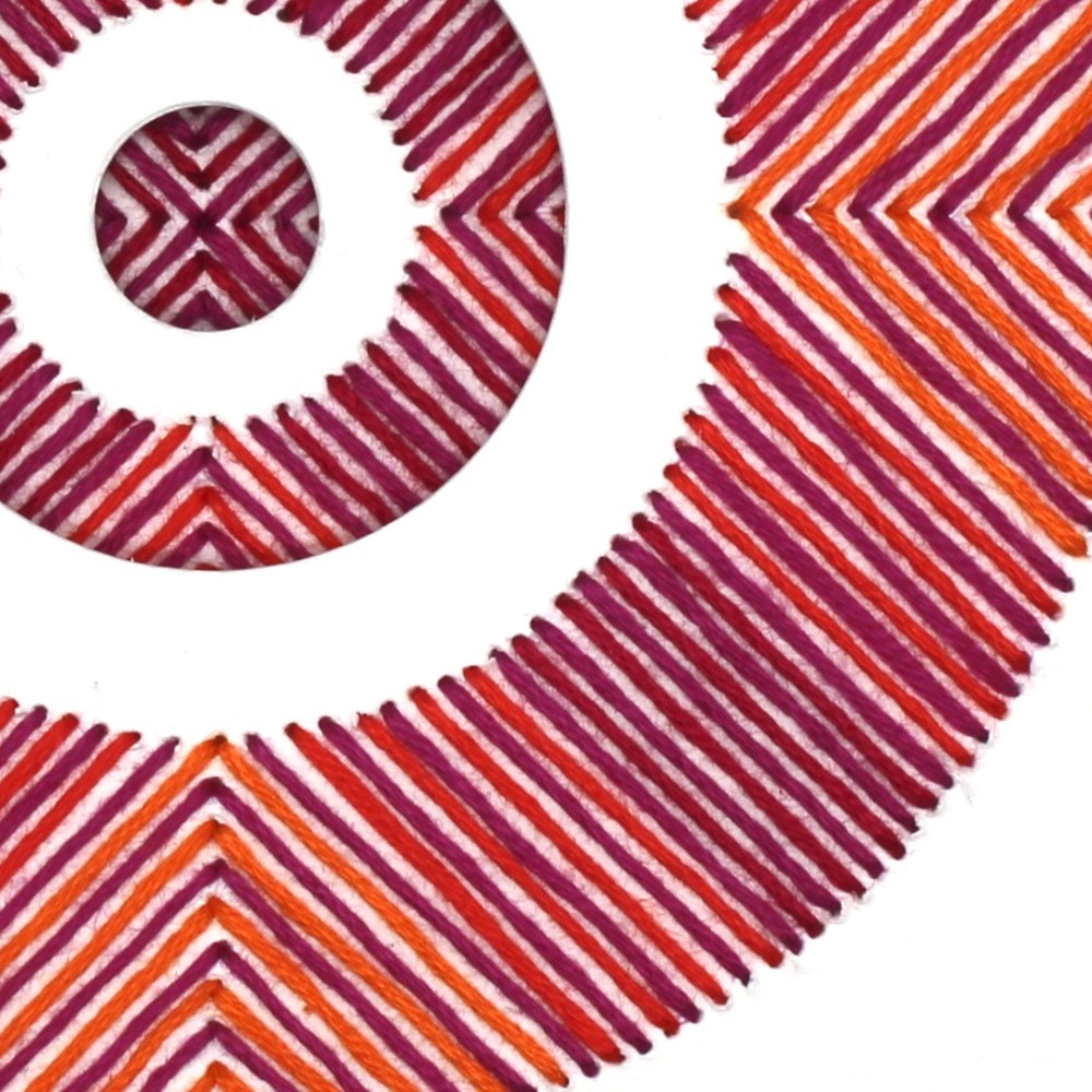 Hand cut and sewn layered paper wall hanging in warm shades of purple and red by Sarah Robl