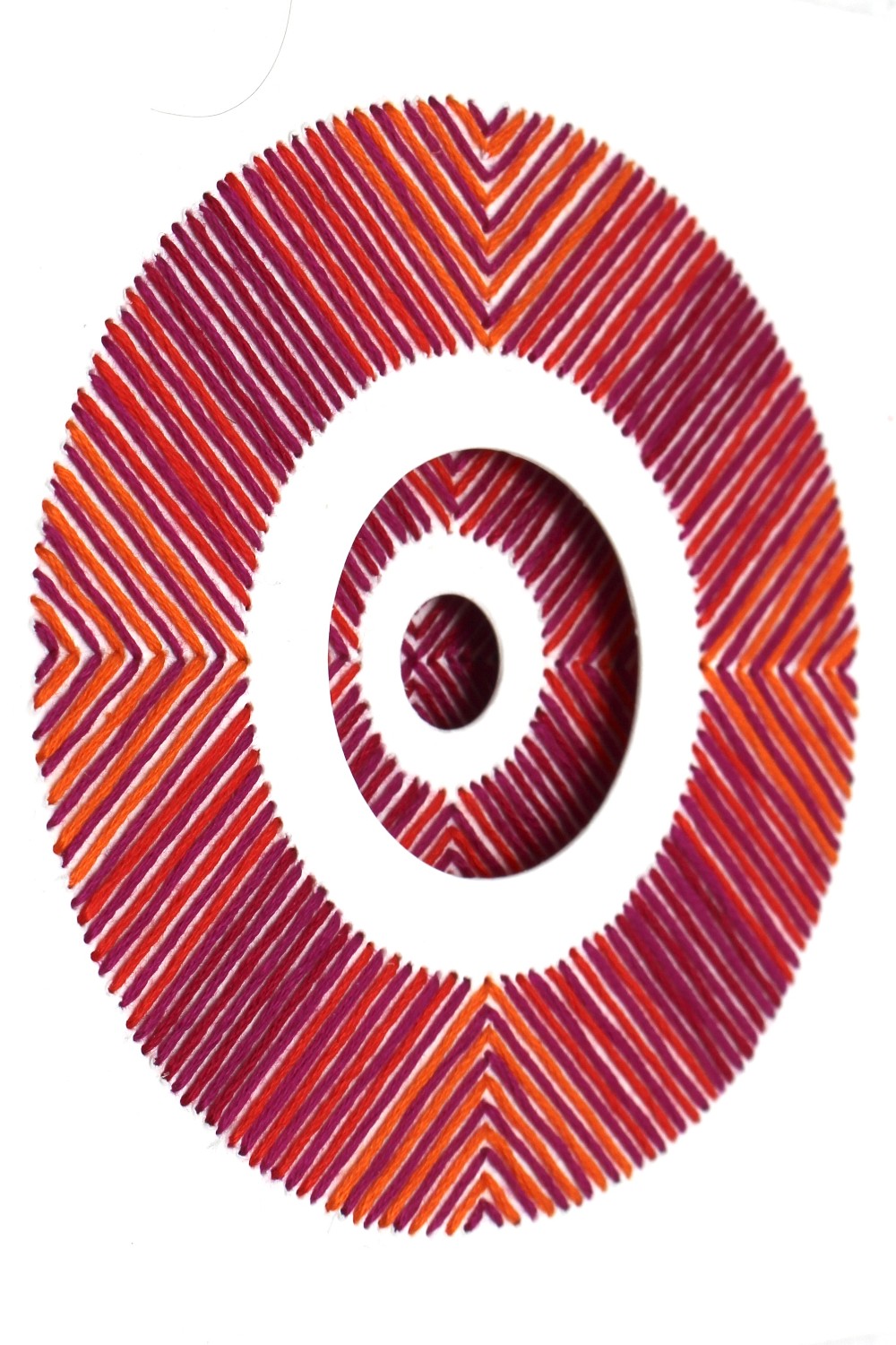 Thread, foam board, watercolor paper; 8" x 8" framed