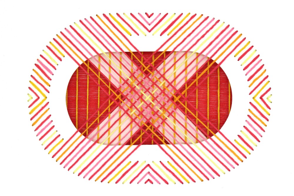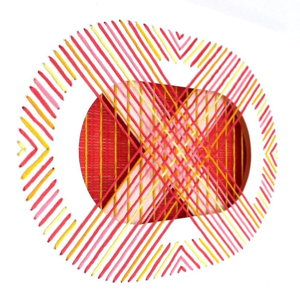 Thread, foam board, watercolor paper; 8" x 10" framed