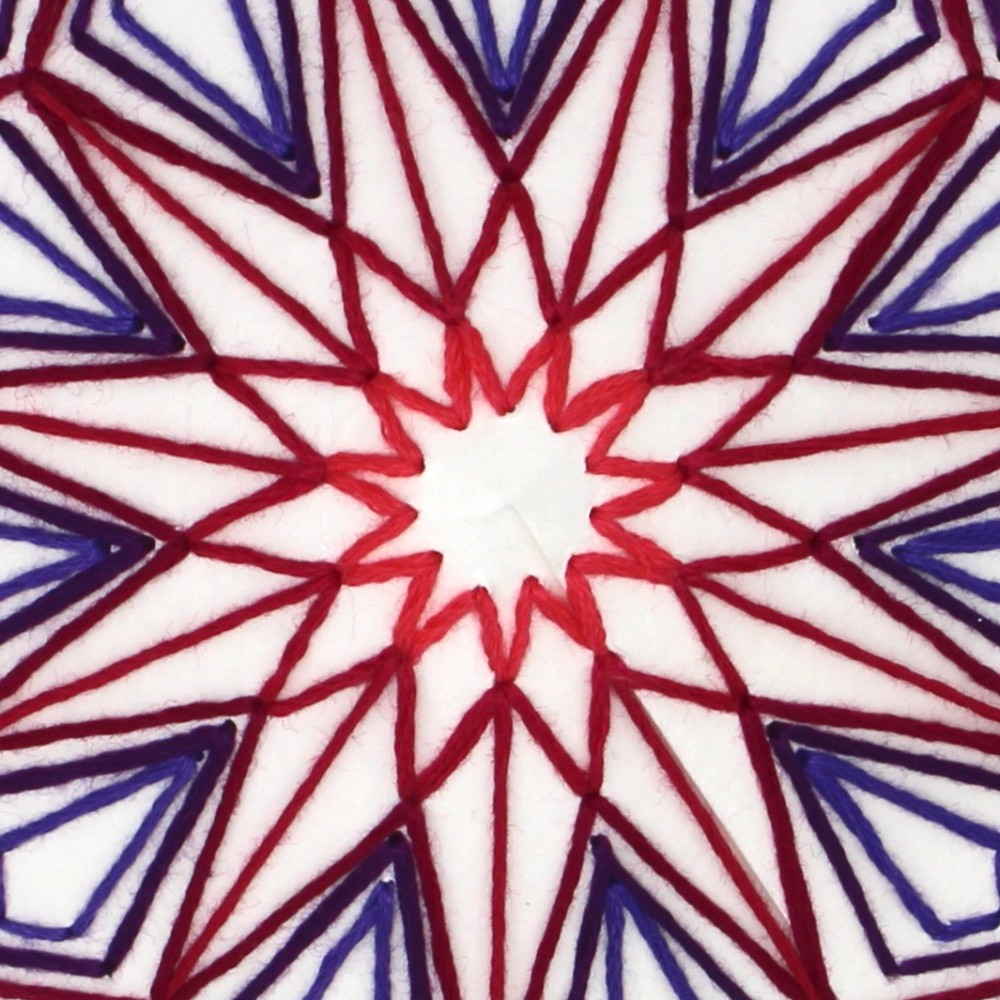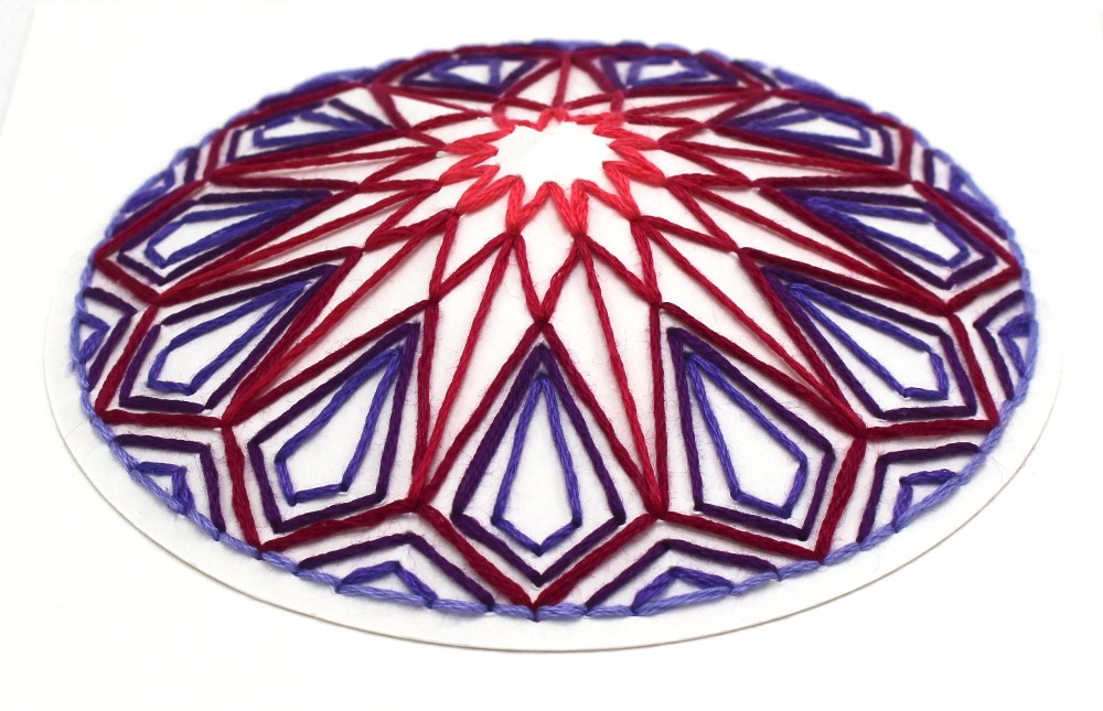 Hand cut and sewn layered paper wall hanging in shades of purple and red by Sarah Robl