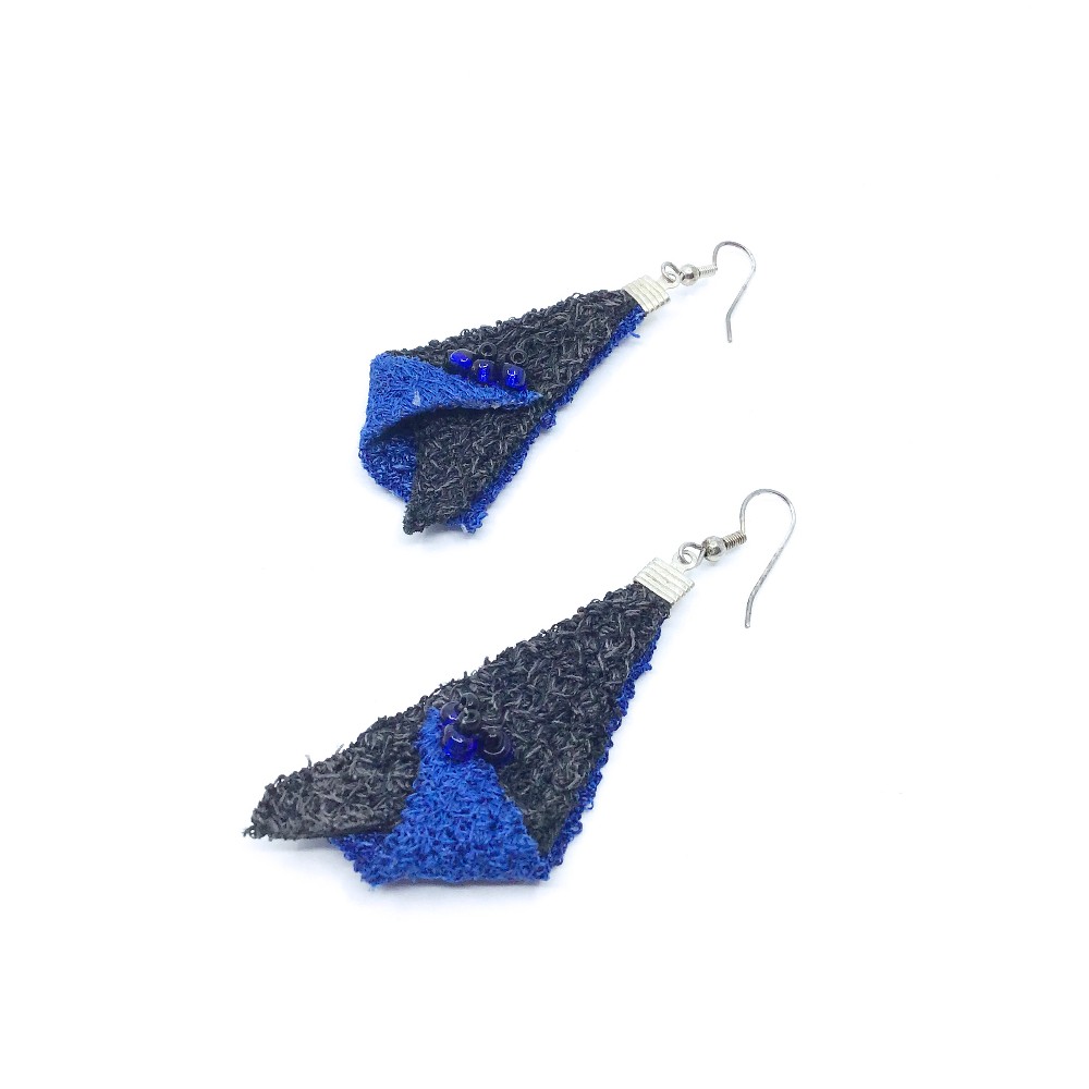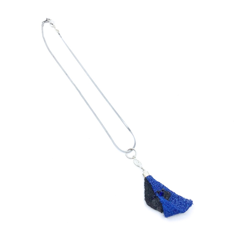Sculpted thread jewelry set including a necklace and earrings in blue and black with beading by Janet Shipley-Hawks