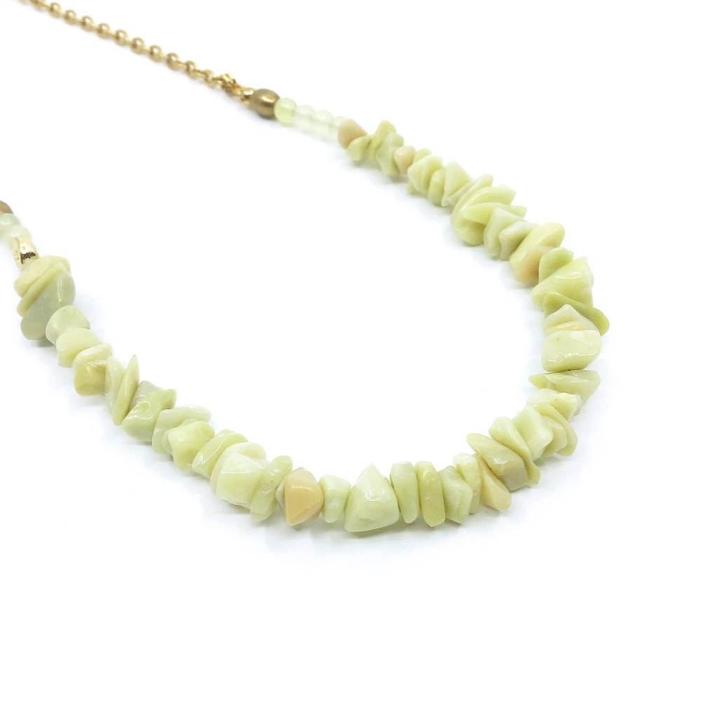 17inch serpintine jade stone necklace on 18k gold plated stainless steel chain 16" chain