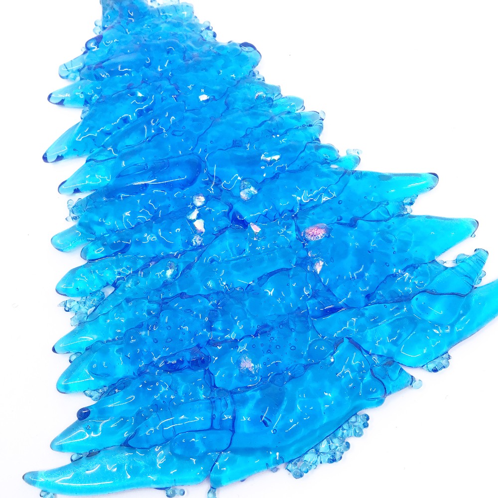 Semi-opaque glass tree in shades of icy blue by Jenny Dillon