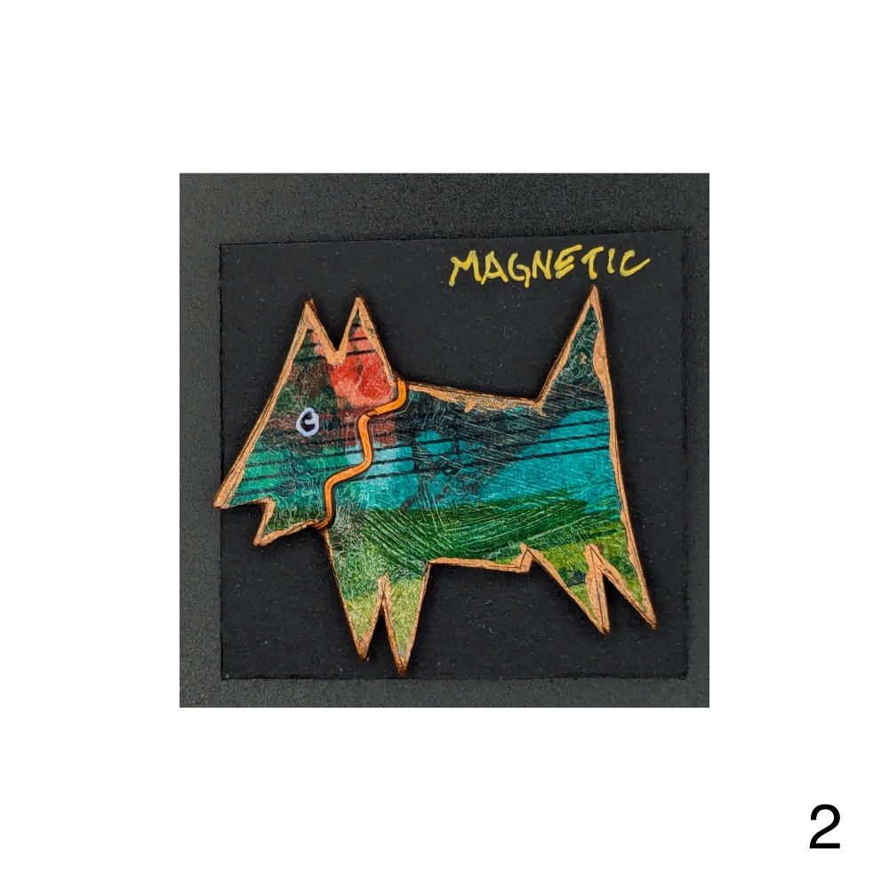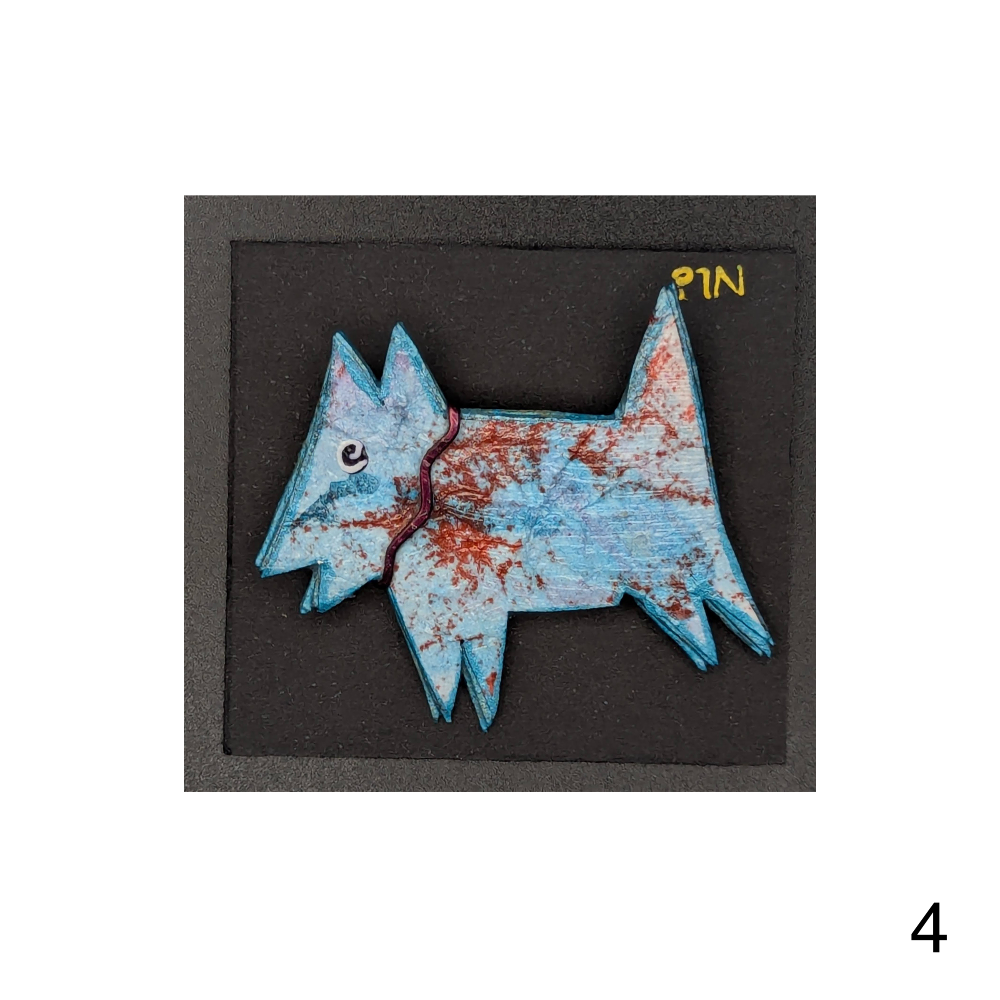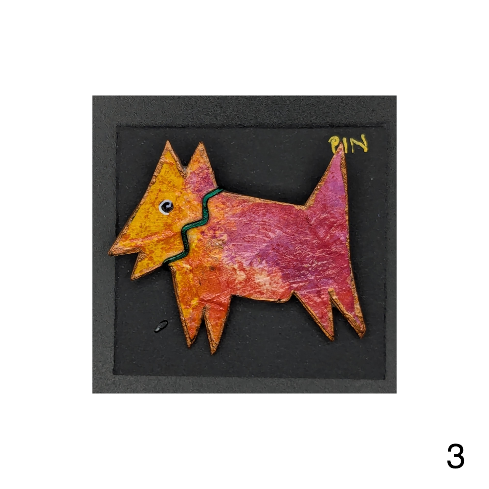 Fun collage pins of dogs in a variety of colors by Bonnie Hossack