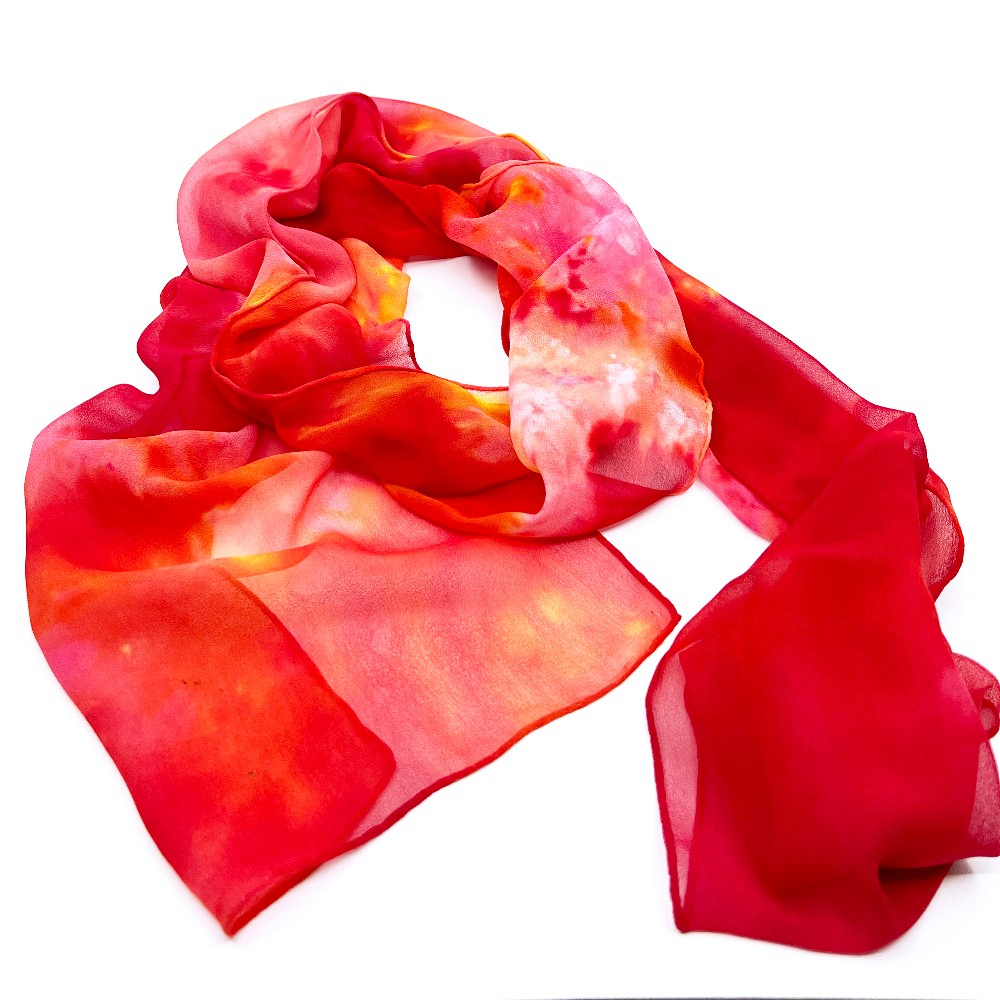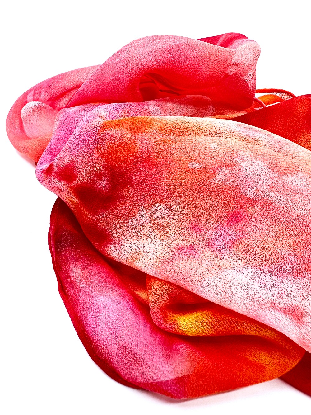 Lightweight silk scarf in orange by Taylor Painter-Wolfe. Hand wash cold & lay flat to dry.