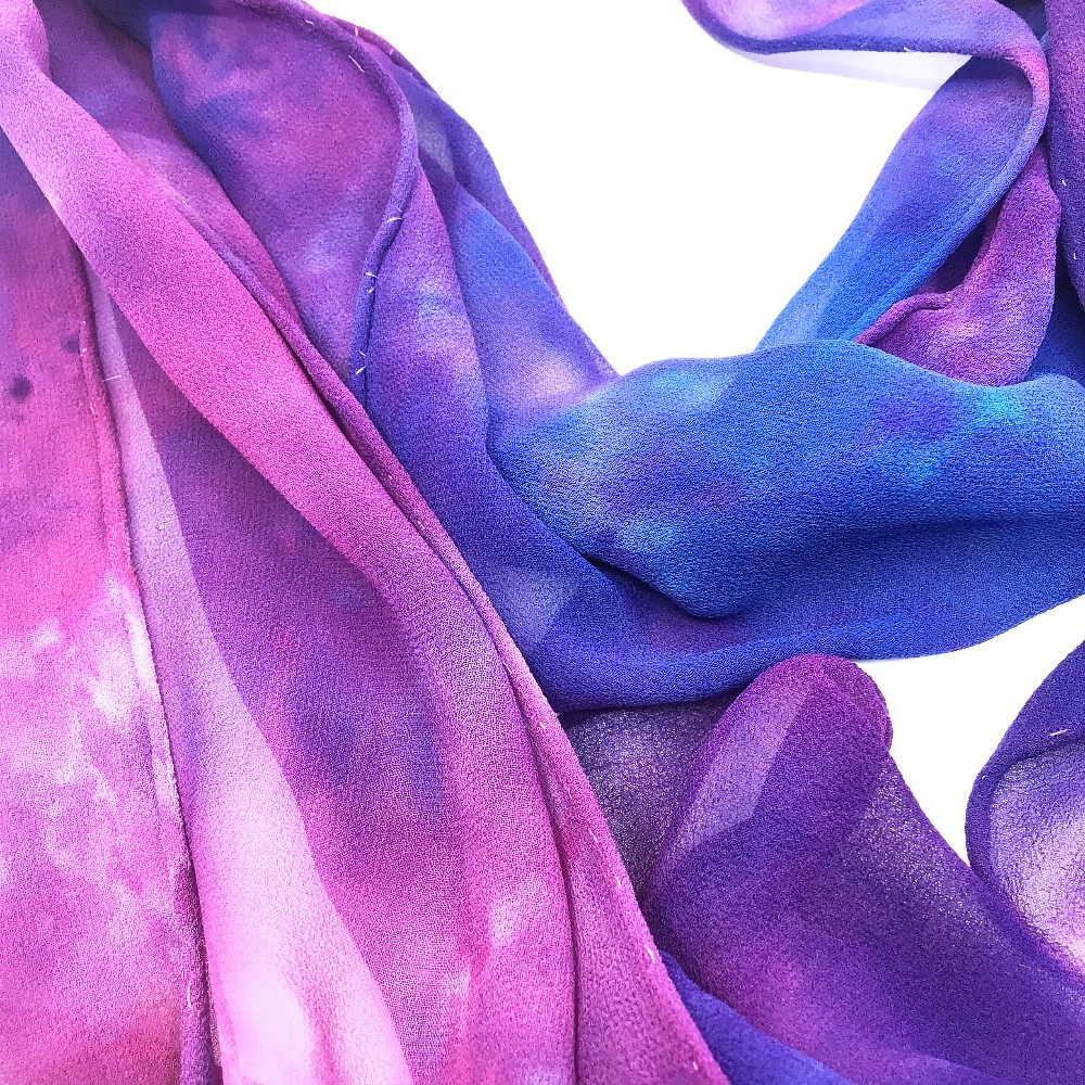 Silk chiffon scarf in shades of pink and purple by Taylor Painter-Wolfe