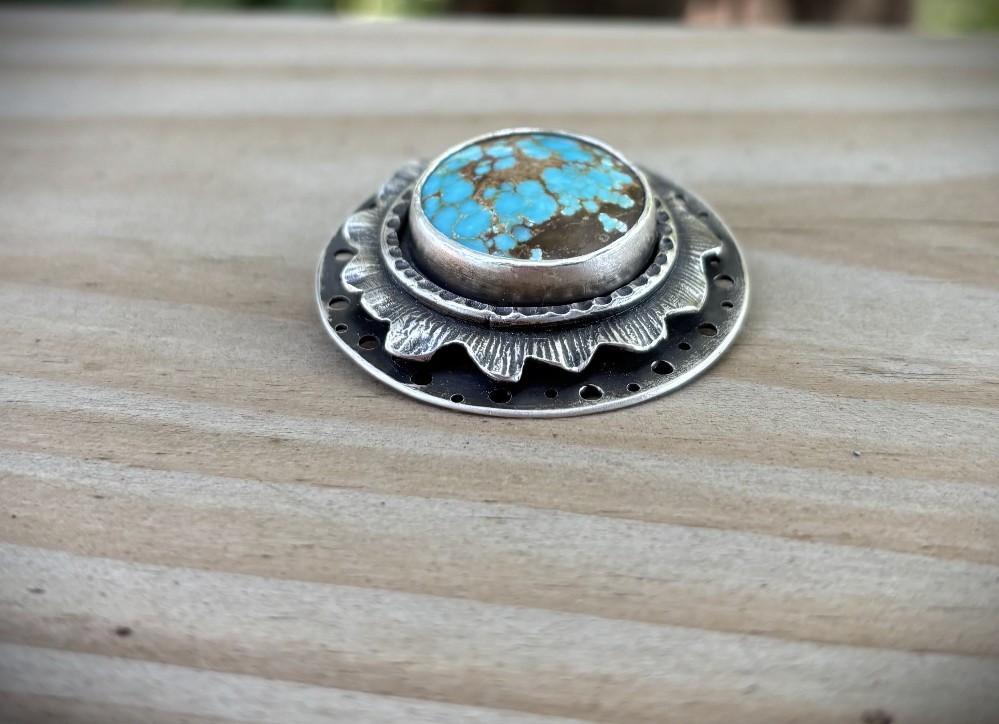 Sterling silver, turquoise; 1.5" x 1.5"