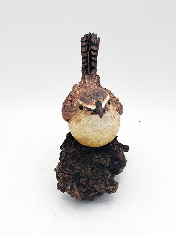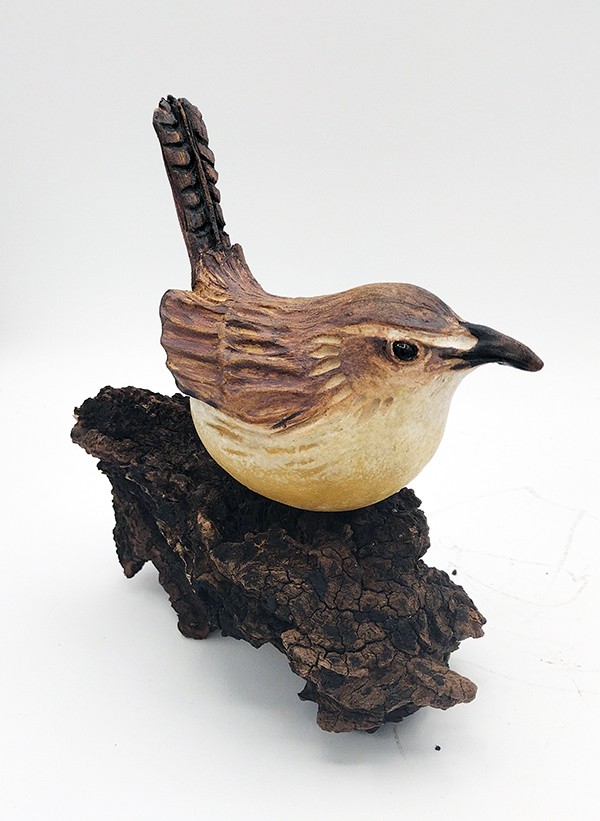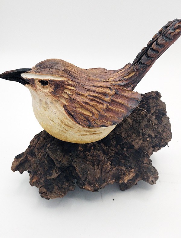 Georgies's white clay, oxide, underglazes, wood base; 5" x 6" x 5"