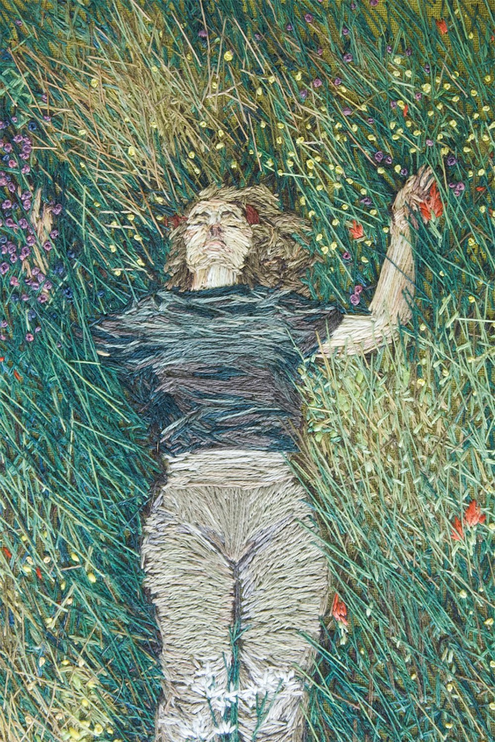 Cotton fabric, cotton, silk and wool embroidery floss, natural dyes including: weld, indigo, goldenrod, madder, black walnut, cochineal, gallnut, myrobalan, iron modifiers; 9" x 9" x .5"