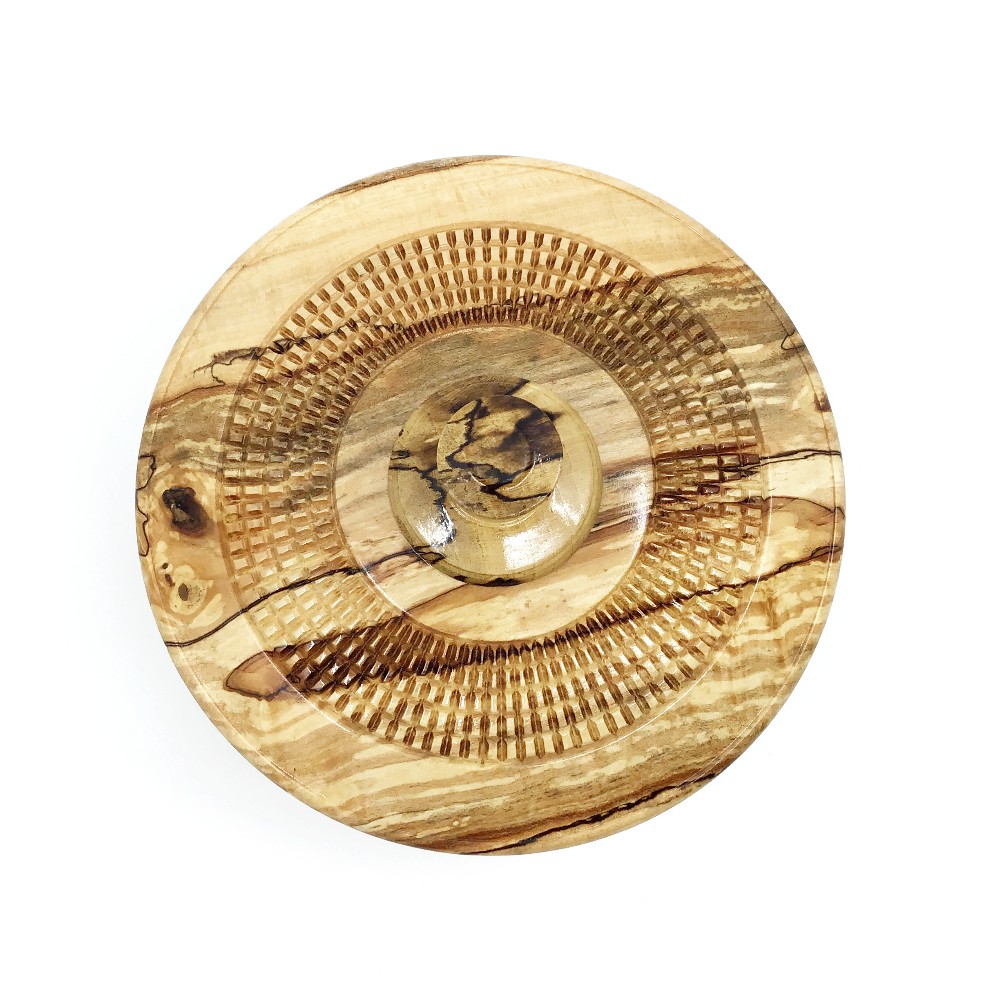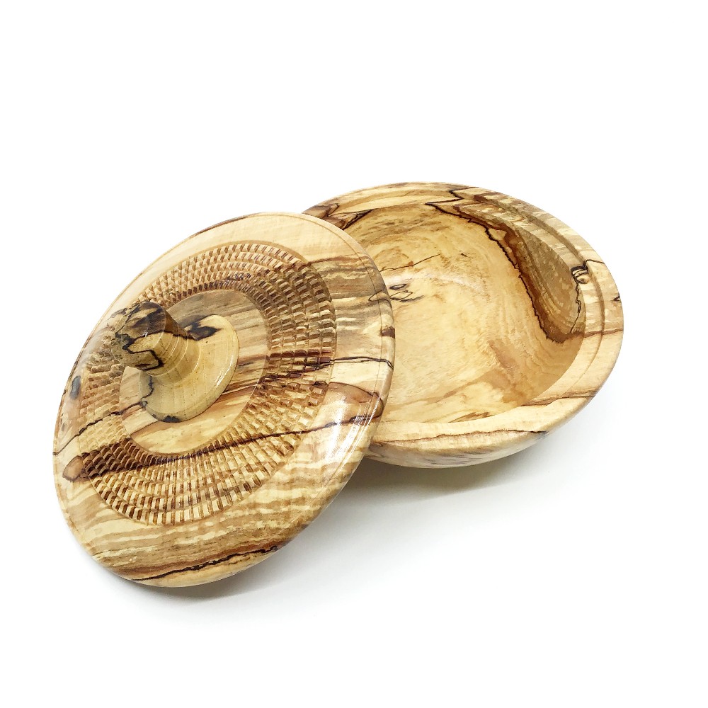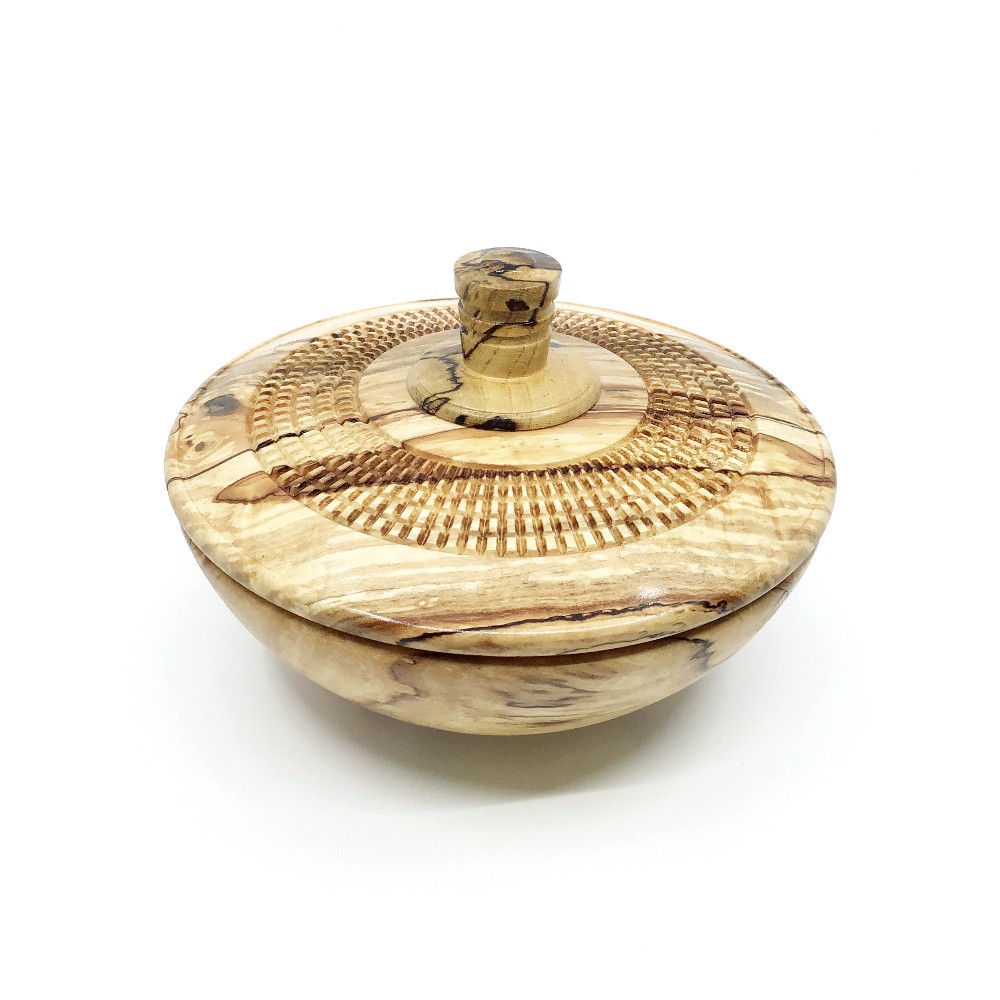 Lidded, wooden box made from Japanese Maple with carved details by Joe Kissinger