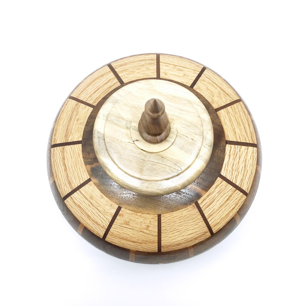 Walnut and oak with lid, segmented lid hollowform 9" x 10"